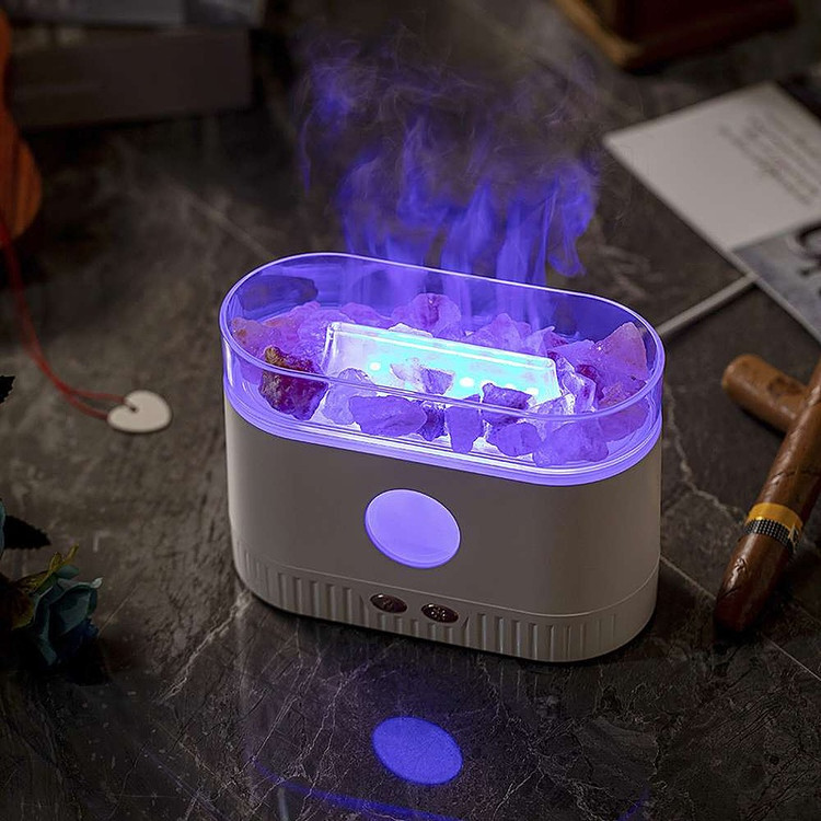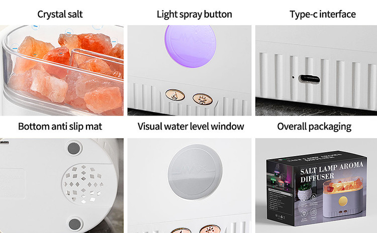 در این دستگاه سنگ نمک قرار داده شده که ارامش این محصول را دوچندان می کند که این سنگ ها را بالای محفظه شیشه ای می توان قرار داد. این محصول از درگاه ورودی تایپ سی پشتیبانی می کند