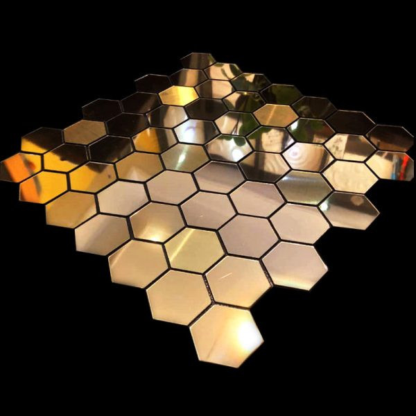 آینه شش ضلعی دکوراتیو طلایی پلکسی