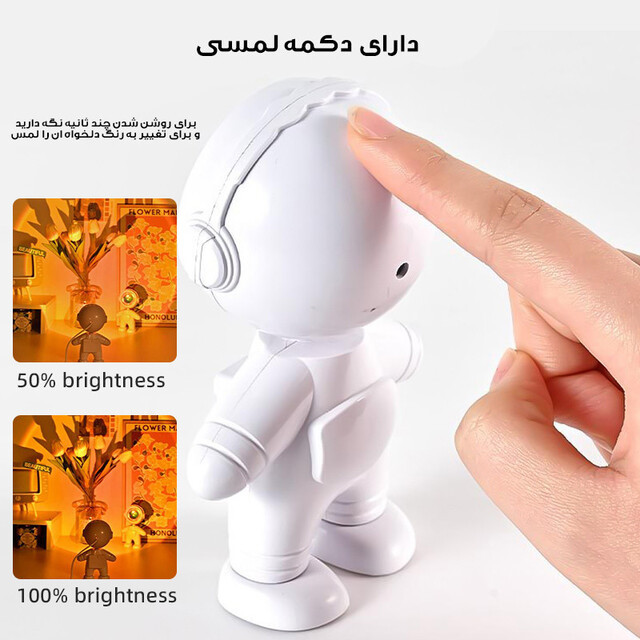 چراغ خواب رومیزی اتمسفر مدل فضانورد ۹ رنگه چند حالته رقص نور چراغ خواب عکاسی و ...(اورجینال سفارشی)