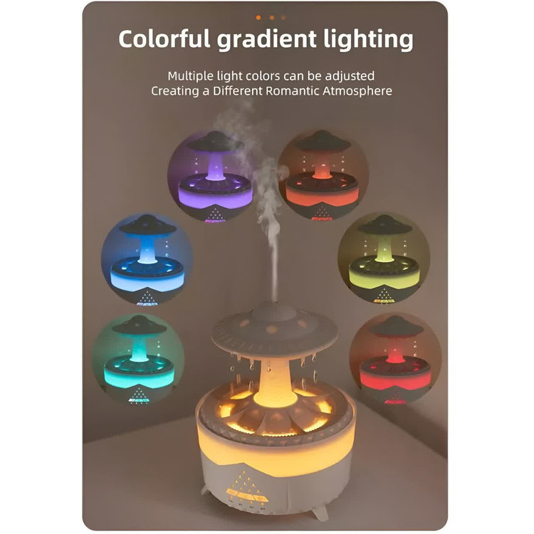 چراغ خواب ابر باران زا نسخه سفارشی ریموت دار (شبیه ساز صدا و قطره های باران و بخور سرد همراه با نورپردازی)