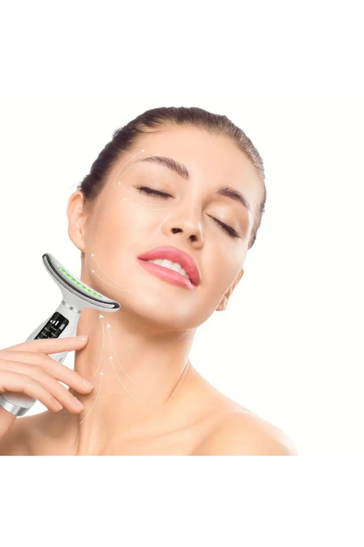 4. برای ماساژ گردن، دستگاه را از پایین گردن به سمت بالا حرکت دهید تا گردش خون افزایش یابد و پوست گردن لیفت شود. حرکات بلند و ملایم انجام دهید، هر ناحیه را به مدت 1-2 دقیقه ماساژ دهید.
